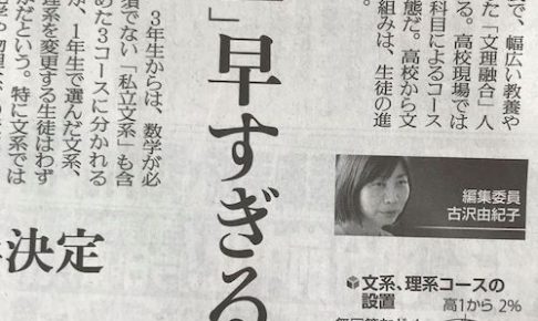 2019年7月18日(木)読売新聞朝刊に、「『文・理』早すぎる選択」という記事が掲載されました。そこにNPO法人NEWVERY『進路指導白書2017』の調査結果と、倉部のコメントも掲載していただきました。 「どんな教育・…