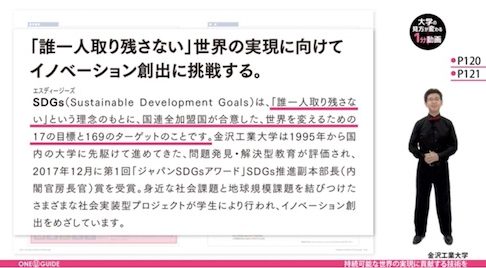 各大学が制作している大学案内の中から、見所を1分間でまとめて映像で紹介する企画「ONE U GUIDE」。映像制作はギガビジョン社によって行われています。ご指名をいただいた場合、倉部が原稿の制作と出演・ナレーションを担当…