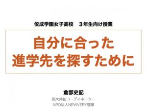 静岡県立三島北高校 2年生向け講演:「ミスマッチをなくす学部・大学選び」