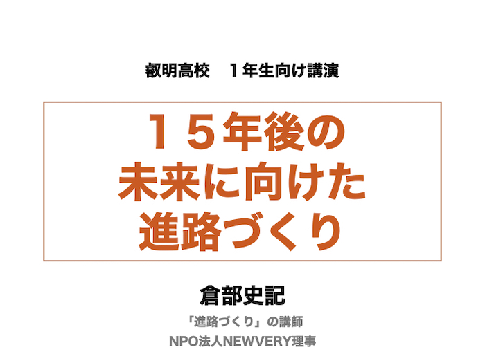 叡明高校 1年生向け講演:「15年後の未来に向けた進路づくり」