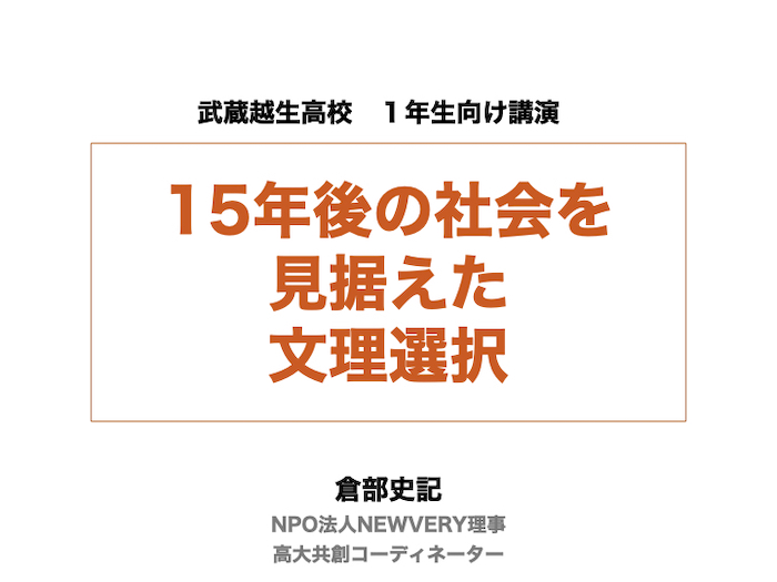 1年生向けの演題は「15年後の社会を見据えた文理選択」、