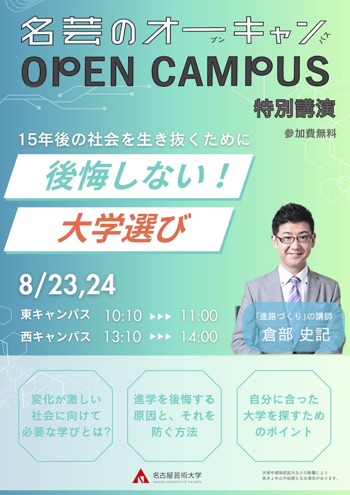 名古屋芸術大学 オープンキャンパス講演:「後悔しない大学選び」