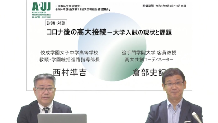 日本私立大学協会がオンラインにて開催した令和4年度広報担当者協議会にて、「5.討議・対談:コロナ後の高大接続-大学入試の現状と課題」と題したコーナーに出演させていただきました。
